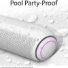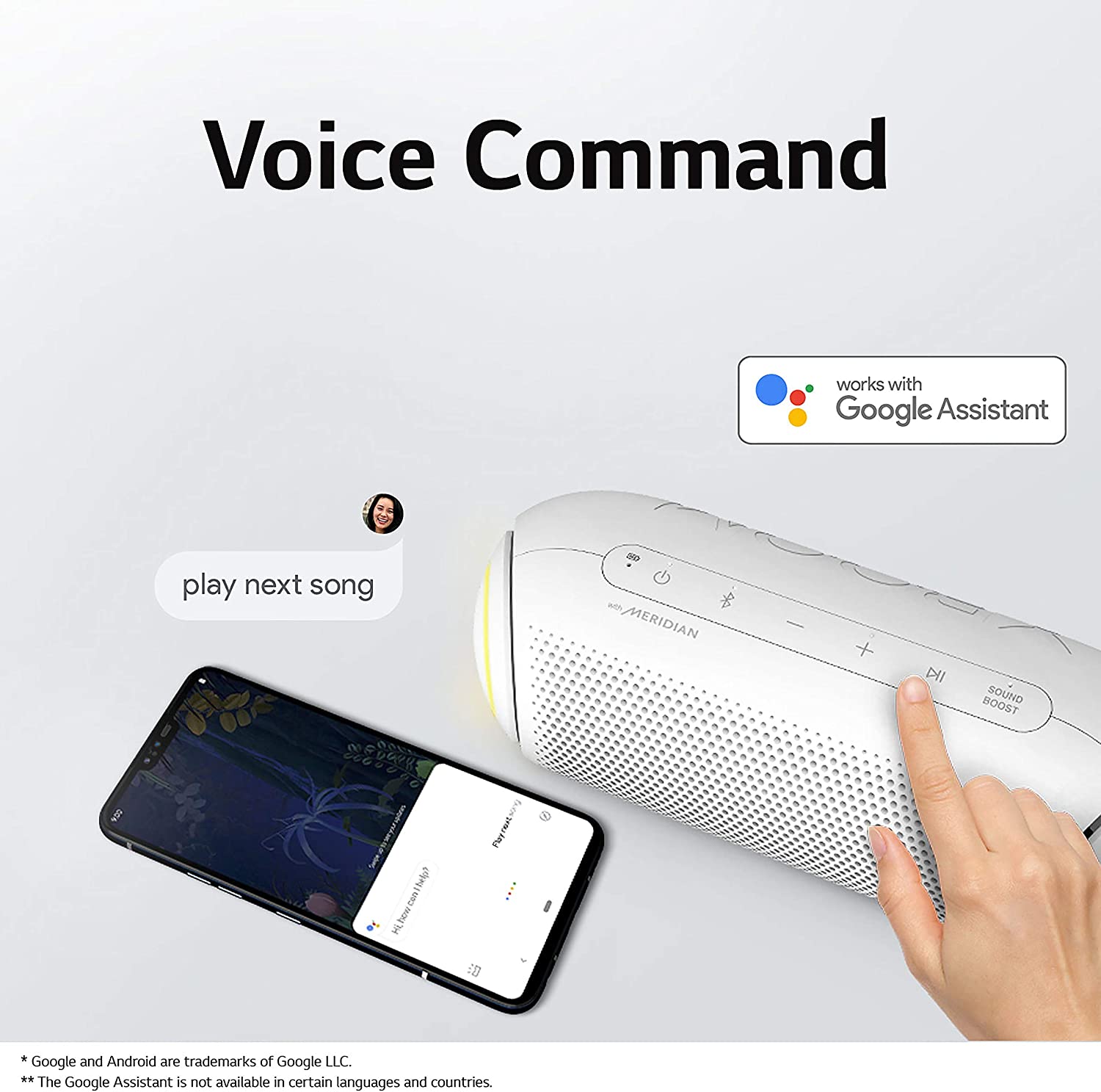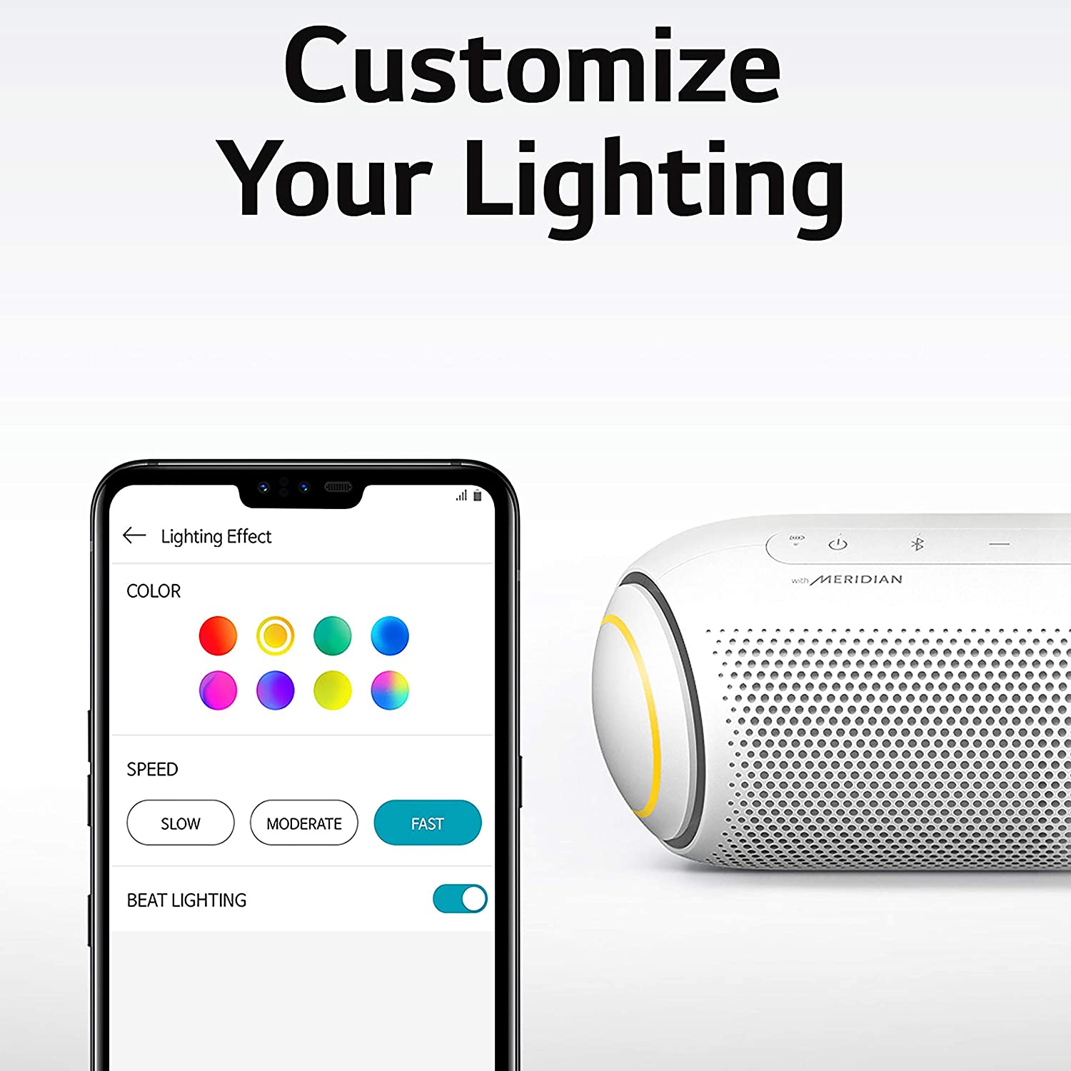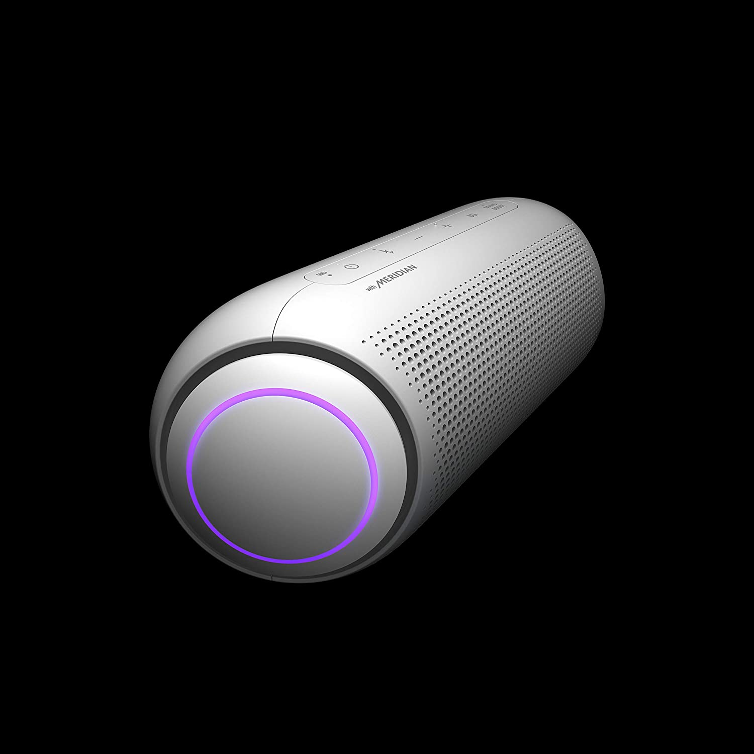 LG’s PL7, XBOOM Go portable Bluetooth speaker offers long-lasting rechargeable battery, for up to 18 hours of playback. The splash-resistant PL5 with Meridian Audio technology for richer bass and clearer vocals adds LED lights add club-style excitement. Battery life will vary with use, settings, and environmental conditions.