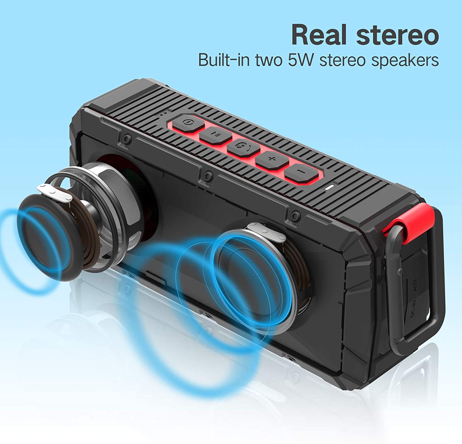 6. A I often stick it on the refrigerator when I cook, or on the bike or grill when I'm outdoors. I think the sound is enough. There are two 5W speakers inside.