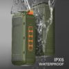 9. A IP6 is waterproof. The magnetic bluetooth speaker very well even if you get wet in heavy rain during outdoor activities. I like to stick it on my bike for outdoor activities.