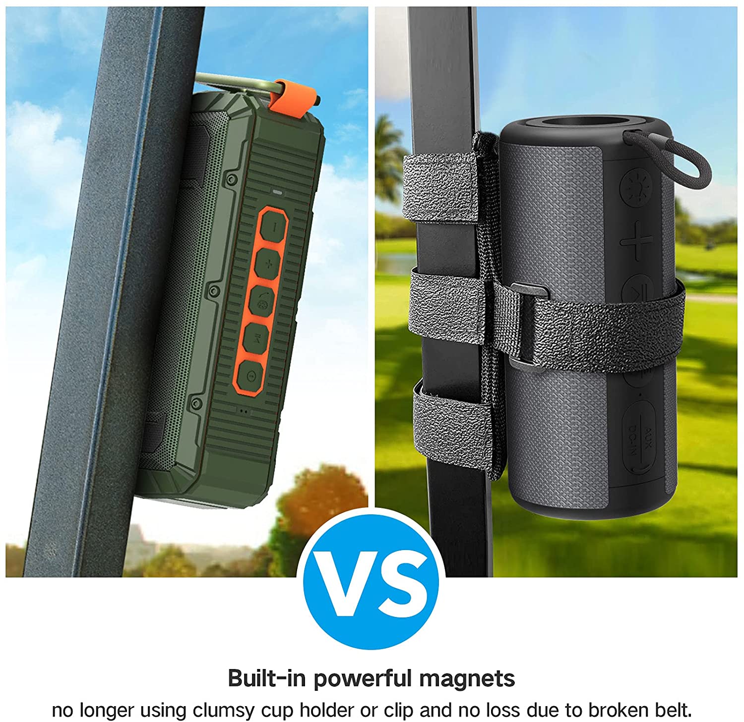 8. A Don't worry about Xergur magnetic bluetooth speaker falling. I put it on the golf cart and the ATV. It doesn't fall when it's bumpy. Even if I take it down by hand, it's hard to take it down.